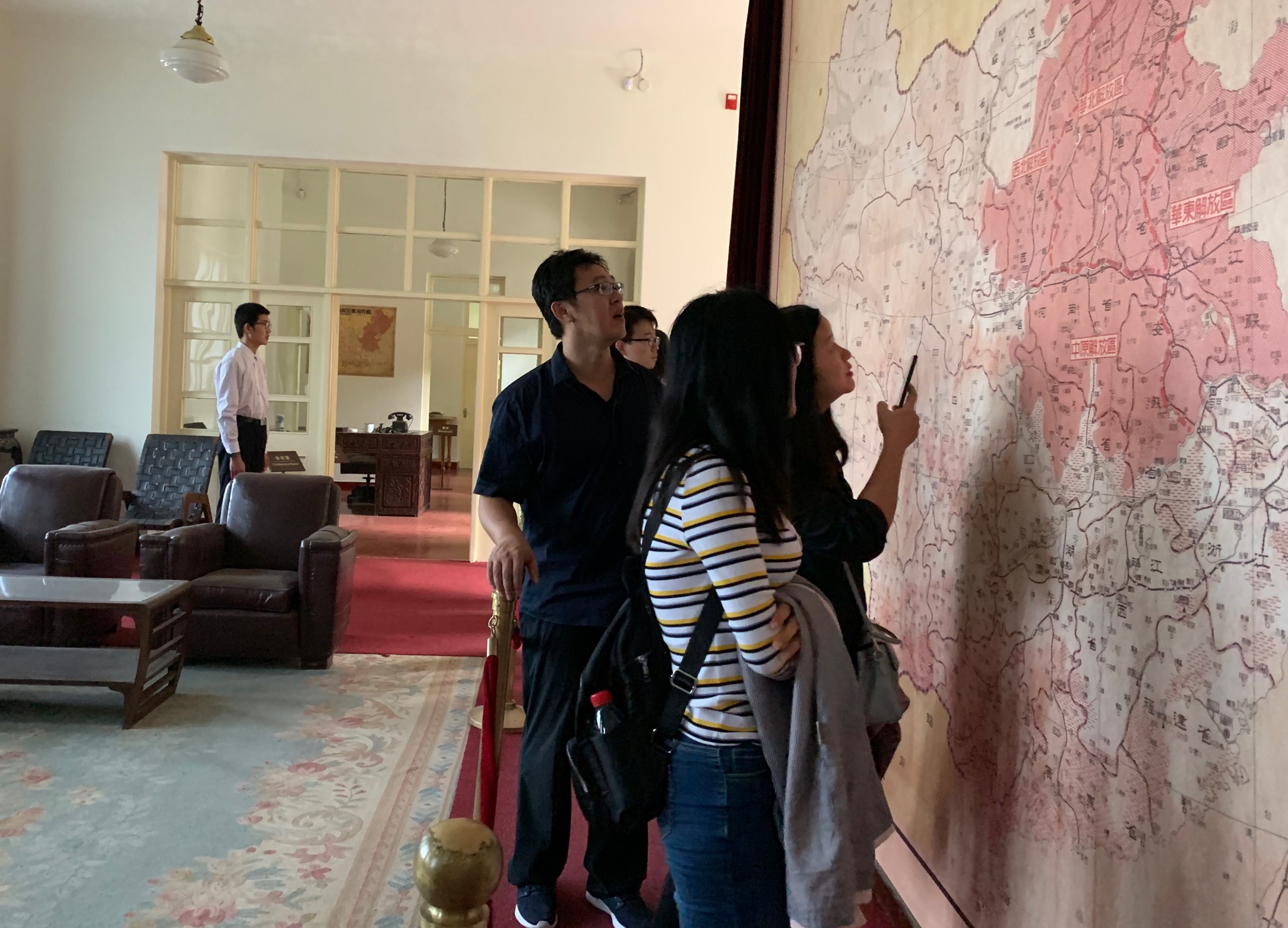 支部党员们首先来到位于香山公园南麓的双清别墅革命旧址,参观了“毛泽东主席旧居”、“毛泽东主席在双清活动图片”等陈列展览,而后前往新建成的香山革命纪念馆,参观了《为新中国奠基——中共中央在香山》主题展览,观看了《北平和平解放》、《西苑机场阅兵》、《开国大典》等珍贵影像纪录片。从展览所呈现的众多红色雕塑、红色油画、红色影像、红色文物中,回顾中共中央从西柏坡到北平香山,领导解放战争走向全国胜利、扭转中国命运的重要时刻,缅怀毛泽东同志等老一辈革命家运筹帷幄、决胜千里的丰功伟绩。
