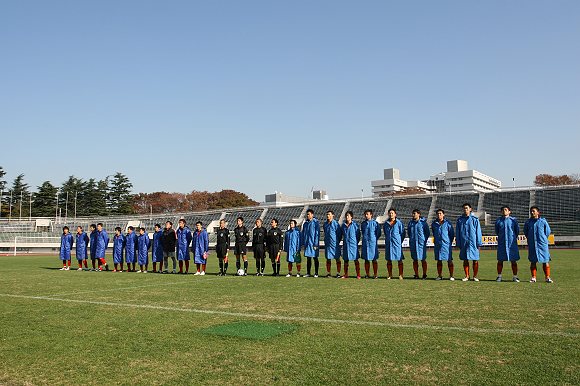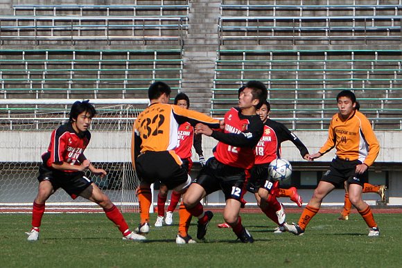 上半时比赛进行到第5分钟,驹泽大学队在禁区前沿获得了一个位置极好的任意球,罚球队员脚法极刁,一脚将皮球直接射入球门的右上角,率先打开了场上局面。
