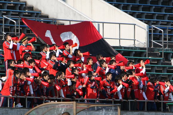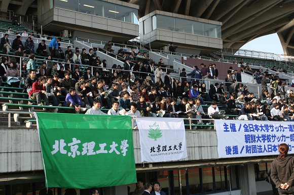 驹泽大学的啦啦队虽然人数不多,但服装、道具和口号都非常整齐划一,而且全场比赛一直保持着很高的热情,或高歌或鼓掌为球队加油助威,倒也成了现场的一道风景。
