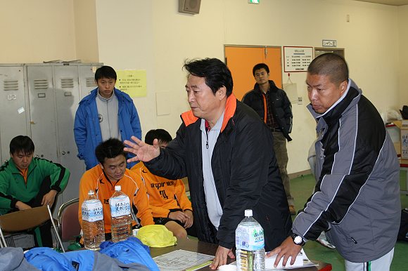 正是这点的不同,导致驹泽大学队在上半场第35分钟和第40分钟,连续两次利用罚角球的机会头球破门得分,使得比分变为了3:1。中场休息时,金志扬总教练告诫队员:由于大部分队员习惯了国内比赛的较慢节奏,面对这种异常的快节奏和头球助跑抢点的打法可能心理上准备不足,所以感到极不适应,下半场的比赛一要心理上稳住阵脚,二要进攻中积极拼抢,三要防守时注意站位,总之,我们是报着学习的态度而来,胜败乃兵家常事,但即使输球也不能输人,大家要尽自己最大的努力和绝不服输的精神继续与对方战斗。