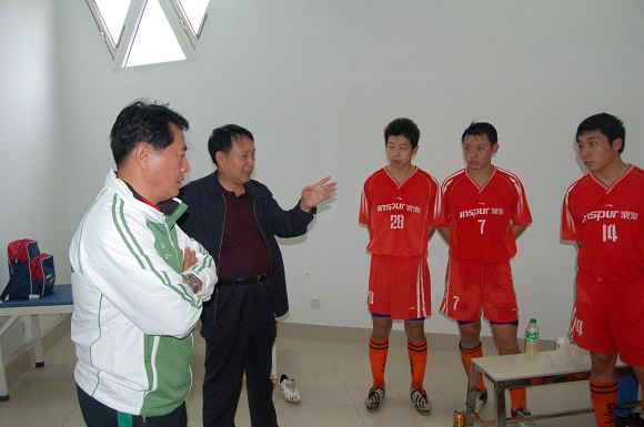 中场休息时主帅金志扬对于大部分队员的精神状态和斗志大为不满,他要求队员在下半场的比赛中必须打起精神,不能因为首个回合的大胜而有所放松,宁肯输球也不能输人。前来现场观战的我校常务副校长李志祥在肯定队员们上场比赛胜利的同时,也引用了中国足协专职副主席谢亚龙针对德赢AC米兰官网足球队的成绩所曾经说过的话:“秀才遇到兵,赢球才能说的清”,希望大家戒骄戒躁,只有踏踏实实地打好每一场比赛,拼搏到底,毫无保留,才能践行“体育回归教育”的先进理念,才能更有说服力地证明给大家看自己所走过的路是正确的。