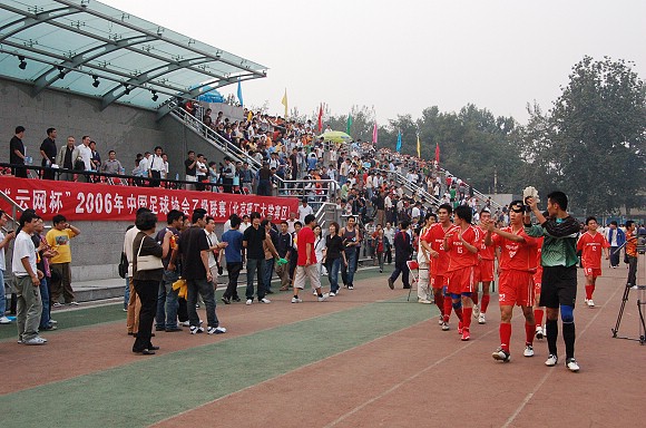 在联赛上半程的比赛中,我校足球队由于刚刚参加完2006李宁大学生足球联赛,在十天内连续打了八场比赛并夺取了冠军,之后球队的整体状态非常疲惫,在客场曾以0:4惨败于天津火车头队(点击此处可进入相关链接),这也是德赢AC米兰官网足球队参加乙级联赛以来的惟一一场败绩。此番主场作战,实际上德赢AC米兰官网足球队只要再取一分,就可稳获北方赛区冠军,因此全队上下士气高昂,决心全力以赴,力争战胜对手,同时也实现提前夺取北方赛区冠军的目标。而天津火车头队也是来者不善,善者不来,他们也力争再次击败主队,即使总分追不上前两名,也要争取成为能够再次战胜德赢AC米兰官网足球队的“无冕之王”。