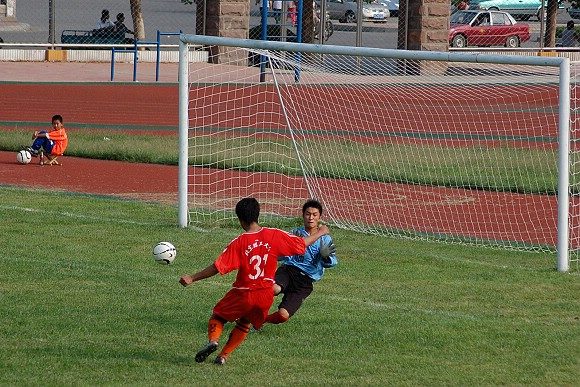 9月2日下午3点,我校足球队迎来了2006全国足球乙级联赛下半程的第三场比赛,在山东淄博市临淄区体育中心客场挑战目前北方赛区排名垫底的青岛黎明队,最终我校足球队以七个球的优势再次狂胜对手,全取三分,并且创造了本年度乙级联赛中最悬殊的比分。在今年上半程的首场比赛中,我校足球队在主场曾以4:0大胜对手(点击进入相关链接)。此场比赛之前,青岛黎明队以2胜2平7负仅积8分的成绩排名北方赛区末位,而我校足球队在少赛一轮的情况下,以6胜3平1负积21分的成绩与天津火车头队积分相等,仅以净胜球的劣势名列北方赛区次席。此场比赛的准备会上,金志扬总教练要求队员对此场比赛不仅要志在必得全取3分,更要努力多进球,以弥补与天津火车头队净胜球方面的差距。