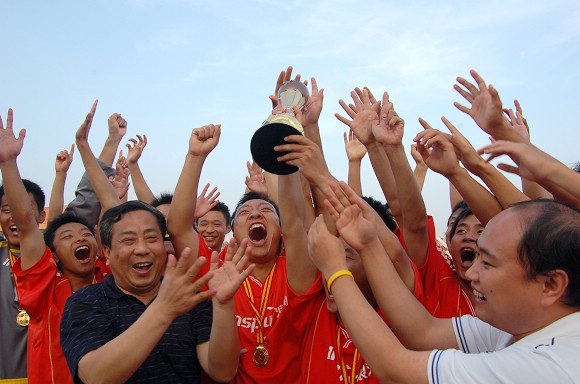 激动万分的全体队员和教练员。