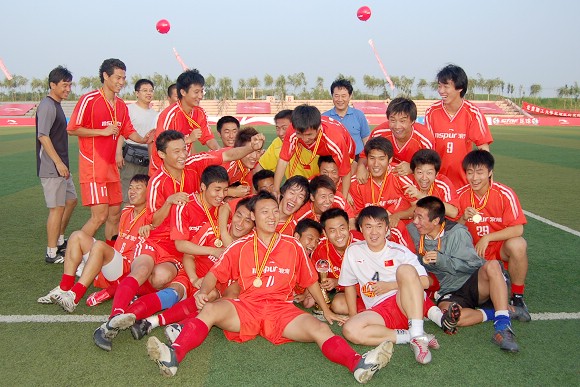 2005~2006李宁中国大学生足球联赛总冠军队伍闪亮登场。