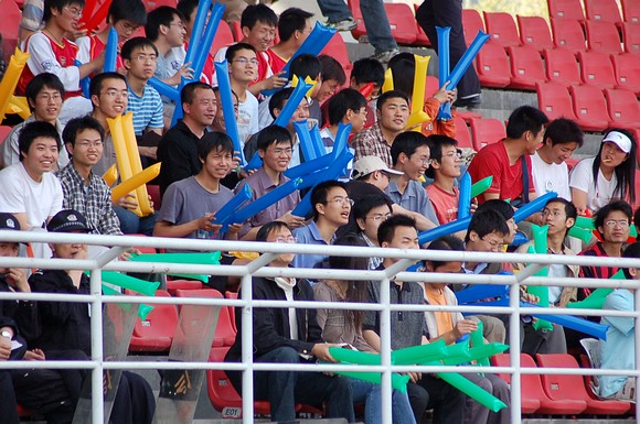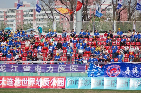同属国防科工委院校的哈尔滨工业大学也组织了百余名球迷前来为我校足球队加油助威。
