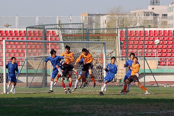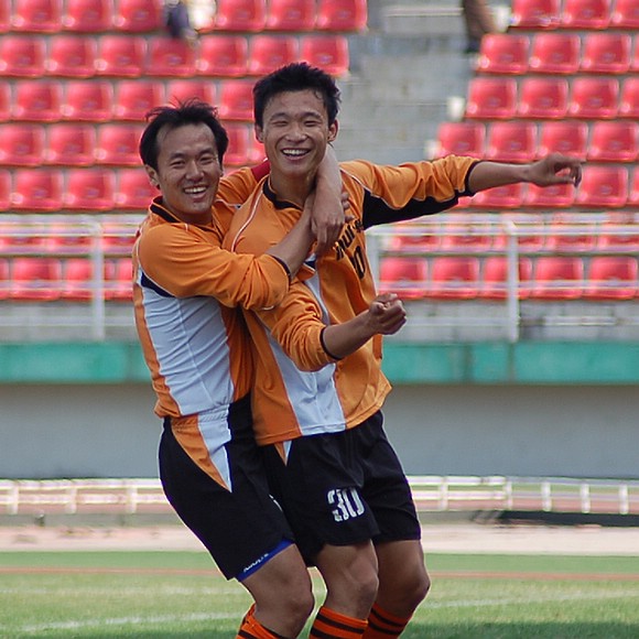 5月20日下午3:00,全国职业足球乙级联赛第三轮比赛在哈尔滨工业大学体育场举行,由我校足球队(橙色球衣)客场迎战哈药毅腾队(蓝色球衣)。哈药毅腾队队员大部分都是来自大连的职业球员,其中包括两名重金引进的中超球员,今年联赛开赛之前就已经定下了冲甲的目标。