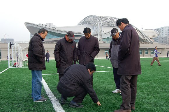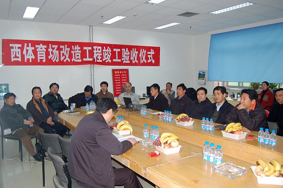由后勤管理办公室、体育部、财务处及总务后勤部有关负责人及专业人员组成的专家组分专业对西体育场、南北篮球场场地建设情况,包括场地面层、地下给排水、供电及相关土建等内容进行了逐项验收。