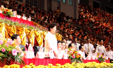 流金七月,大地芳菲。以“团结、奋进、文明、育人”为主题的中华人民共和国第八届大学生运动会开幕式,7月16日晚在广东省广州大学城隆重举行。中共中央政治局委员、广东省委书记张德江出席开幕式;国务委员陈至立宣布第八届全国大学生运动会开幕。