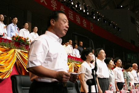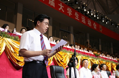 图为陈至立宣布中华人民共和国第八届大学生运动会开幕