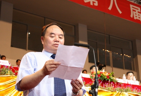 第八届全国大学生运动会主席团主席、组委会主任、广东省委副书记、广东省省长黄华华致欢迎词,代表广东省委、省政府和广东人民,对来自全国各高校的大学生体育健儿,对中央各部委,各兄弟省、自治区、直辖市,新疆生产建设兵团以及香港、澳门特别行政区的嘉宾和朋友们表示热烈欢迎。黄华华说,本届大学生运动会是我国在2008年北京奥运会之前举办的一次重大体育盛会,既是对我国高等学校体育工作成果和大学生精神风貌的一次集中展示,也是对奥林匹克精神的一次广泛宣传。它的成功举办将极大激发广大青少年参加体育锻炼的兴趣和热情,有效推动我国高等教育和学校体育事业的发展。他表示,广东将遵循“以人为本办大运”的原则,全力以赴,努力把本届大运会办成“体育的盛会,大学生的节日”。衷心祝愿本届大学生运动会精彩、圆满、成功。