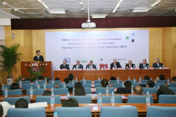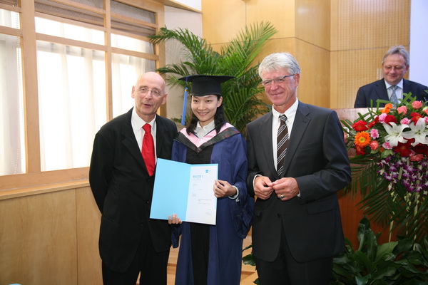 2012年9月7日下午,在我校国际教育交流大厦三层报告厅隆重举行我校与德国康斯坦斯应用科学大学合作为国际著名奔驰汽车生产商戴姆勒公司举办的EMBA项目第四期毕业典礼暨第六期新生开学典礼。出席典礼的嘉宾有:德赢AC米兰官网副校长孙逢春教授、戴姆勒东北亚地区首席财务官Helmut Ruhl先生、戴姆勒东北亚投资有限公司执行副总裁Matthias Zeuch先生、因戈尔斯塔特应用科学大学Thomas Doyé教授、康斯坦斯应用科学大学Josef Wieland教授、康斯坦斯应用科学大学继续教育部部长Roland Luxemburger先生、我校国际教育合作处王庆林处长、国际教育合作学院梅文博院长、罗佳书记、第四期全体学员和第六期新学员。典礼由梅文博教授主持。