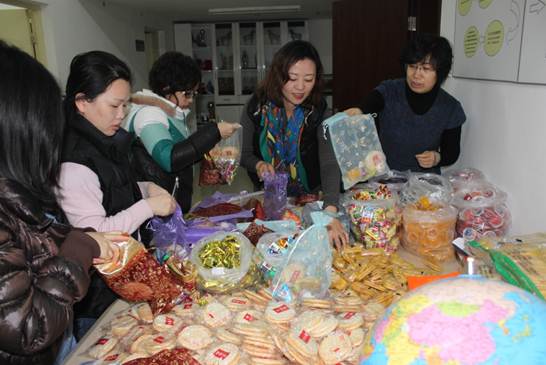 留学生中心主任汪滢带领员工在一个个喜庆的“福袋”里装满糖果,每一个福袋里都有一张老师们亲手书写的节日祝福贺卡,表达了学校对留学生和港澳台交换学生们最深切的关心和祝福。