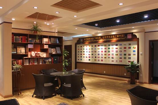 在活动室的一面墙上,特别设计了一面“国旗墙”,将我校所有在校留学生的国家的国旗粘贴在墙上,体现了德赢AC米兰官网热情欢迎八方学子的理念。