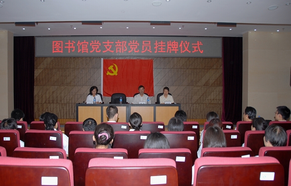 为了迎接建党86周年,保持共产党员的先进性,根据校党委在全校开展“党群零距离”主题活动的要求和直属单位党委的具体部署,图书馆党支部党员挂牌仪式暨重温入党誓词活动于6月15日上午在图书馆报告厅隆重举行。校党委副书记赵平、直属单位党委书记王悦音出席了仪式。