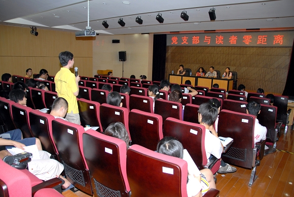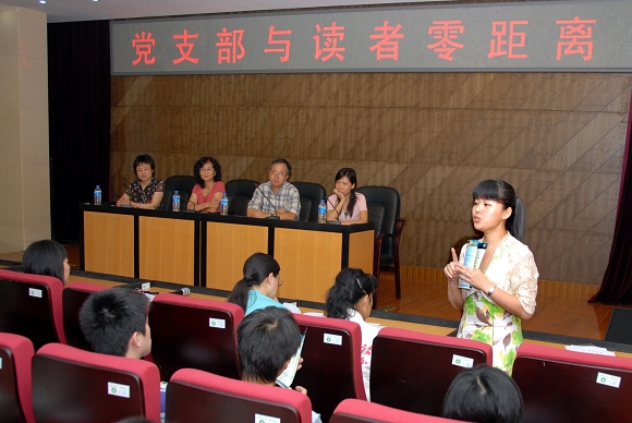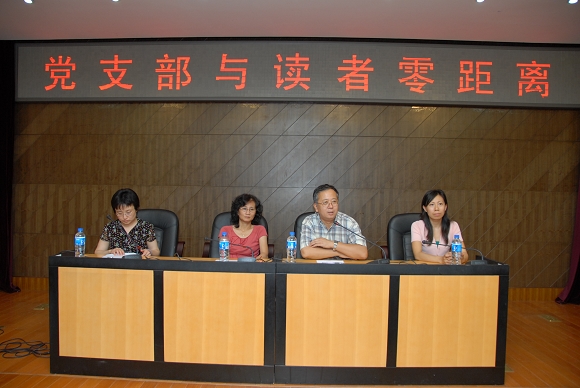党支部与读者零距离——读者座谈会于6月22日下午4点在图书馆报告厅召开,该活动系图书馆党支部“为党旗争光彩”党群零距离系列活动之一。共有60余位读者出席了会议,他们来自学校各院系,其中既有本科生、硕士生、博士生,也有教师。