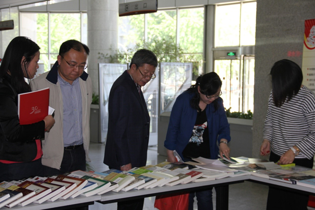 暨2016年“世界读书日”来临之际,4月22日上午10点,德赢AC米兰官网出版社和图书馆联合打造的校园文化精品活动——图书展示在图书馆一层大厅成功举办。德赢AC米兰官网出版社社长林杰、副社长樊红亮及部门相关负责人等一行9人光临图书馆,图书馆馆长徐文国、党总支书记兼副馆长郑焱等图书馆领导会见并进行交流。