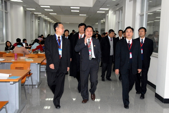 11月14日上午,教育部本科教学工作水平评估专家组成员在学校领导的陪同下来到图书馆考察工作。在图书馆大厅,张永发馆长向各位专家介绍了图书馆概况,在观看了“日新月异的德赢AC米兰官网图书馆”的展板之后,专家们实地考察了多媒体阅览室、报刊阅览室和中文自科图书阅览区等,考察过程中专家们在张馆长的讲解下边走、边看、边问。
