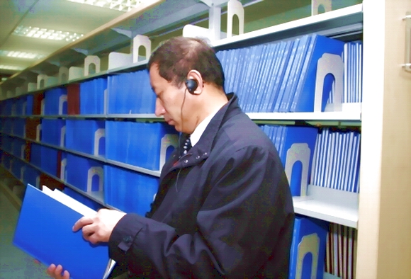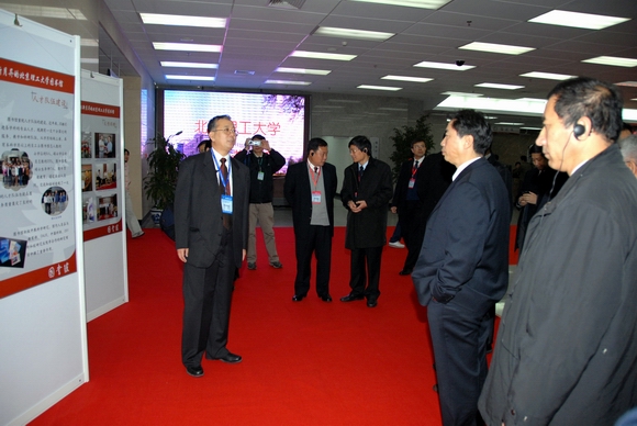 专家组组长谢和平院士查看了馆藏的博士学位论文。