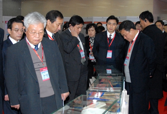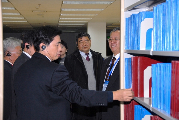 专家们观看了图书馆文库/特藏展。