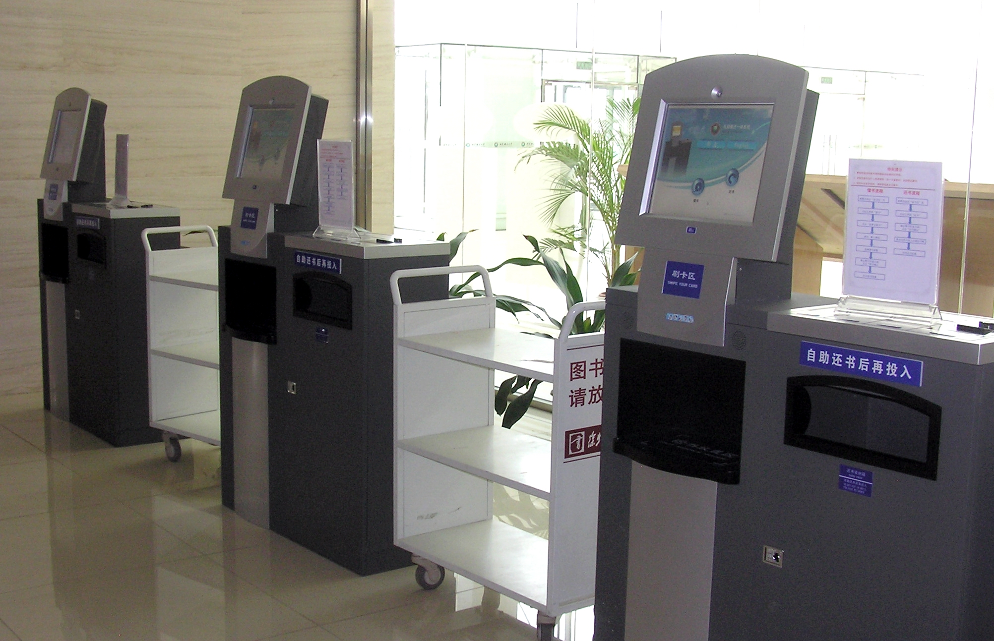 图书自助借还系统使用了无线射频识别(RFID)技术。RFID技术被科技部、工业和信息化部等确定为国家高新技术产业。我校图书馆从3月份起实现了120 万册开架图书和期刊的RFID标签转换和自动识别,是目前国内应用规模最大的高校图书馆。图书馆自主研发的RFID全自动闭架书库、全自动光盘库已经申请了四项国家发明专利,其中1项已获得授权,上海阿法迪智能有限公司已利用该专利技术为理工大学良乡校区图书馆建造全自动闭架书库。