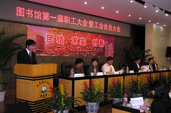 各位与会代表本着高度负责的态度和精益求精的精神,全面审议了图书馆馆长张永发做的题为《团结起来,为建设国内一流的高校图书馆而努力奋斗》的图书馆工作报告,审议了图书馆工会工作报告,讨论通过了《文明服务公约》。