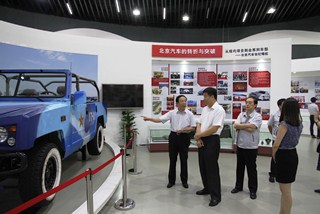 调研组首先参观了北京汽车产业研发基地“汽车型”沙盘、北汽集团概念车新能源车、北汽集团历史文化展览馆和北汽造型设计研究中心。北汽集团党委副书记、纪委书记李志立、副总经理孔磊、党委常委组织部兼人力资源部部长高原等陪同参观。