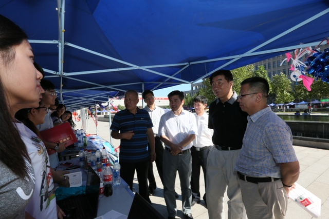 郭大成书记与迎新工作人员交流