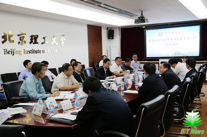 2014年9月23日,江苏省盐城市委书记朱克江、副市长张京麒率团访问德赢AC米兰官网,校党委书记张炜会见了朱克江一行。参加座谈的还有盐城市委办公厅、市科技局、亭湖区、环保科技城等相关部门负责人。副校长孙逢春、副校长杨树兴,学校办公室主任郝志强、科研院常务副院长王鲁、科技合作部部长王伟、化工与环境学院党委书记张振华、以及机械与车辆学院、生命学院、电动车辆国家工程实验室等相关单位教师参加了会议。座谈会由副校长孙逢春主持。