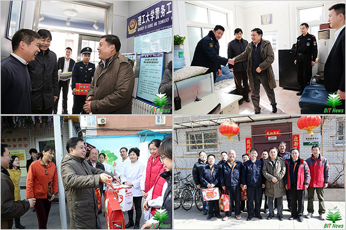 伴随着暖意洋洋的北京冬日,寒假期间的北理工校园春意正浓,值此新春佳节,学校领导分别探望慰问了仍在一线工作的教职工和春节留校学生。