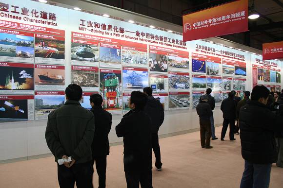 展览介绍了三十年来,中国对外开放取得了举世瞩目的成就:一九七八年到二〇〇七年,中国货物贸易进出口总额从二百余亿美元增长到二万余亿美元,世界排名由第三十二位上升到第三位。此外,中国制造业增加值已超过美国和日本,居世界第一位。纺织品、服装、鞋、玩具等劳动密集型产品连续多年成为世界上第一大出口国。同志们对展出的图片、图表及陈列的文物、档案、实物和模型表现出极大兴趣,在仔细聆听讲解员讲解的同时,不时询问有关情况,很多同志对中国对外开放30年来发生的巨大变化惊叹不已。