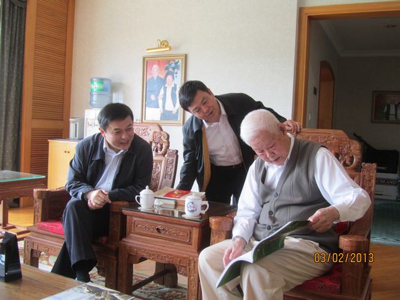 李鹏学长在夫人朱琳的陪同下接见了胡海岩校长一行,李鹏学长身体健康,精神矍铄,见到母校来访的同志们十分高兴。李鹏学长一边翻看胡海岩校长赠予的《德赢AC米兰官网校友风采》一书,一边深情的回忆起在母校学习和生活的情景,回忆起当年延安自然科学院师生在非常艰苦的办学条件下团结一致、执着追求、不懈奋斗、抗战报国的点点滴滴,并与胡海岩校长等一道追溯了学校七十多年来的办学历程,期望学校为中国共产党在探索中国高等教育实践的道路上再立新功。