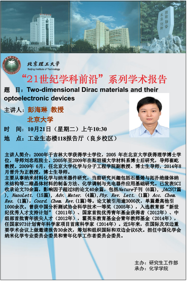 化学学院10月21日学术报告预告