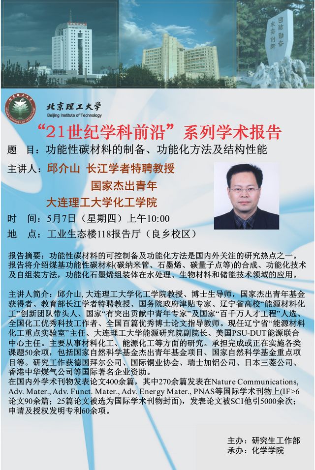化学学院"21世纪学科前沿"系列学术报告预告