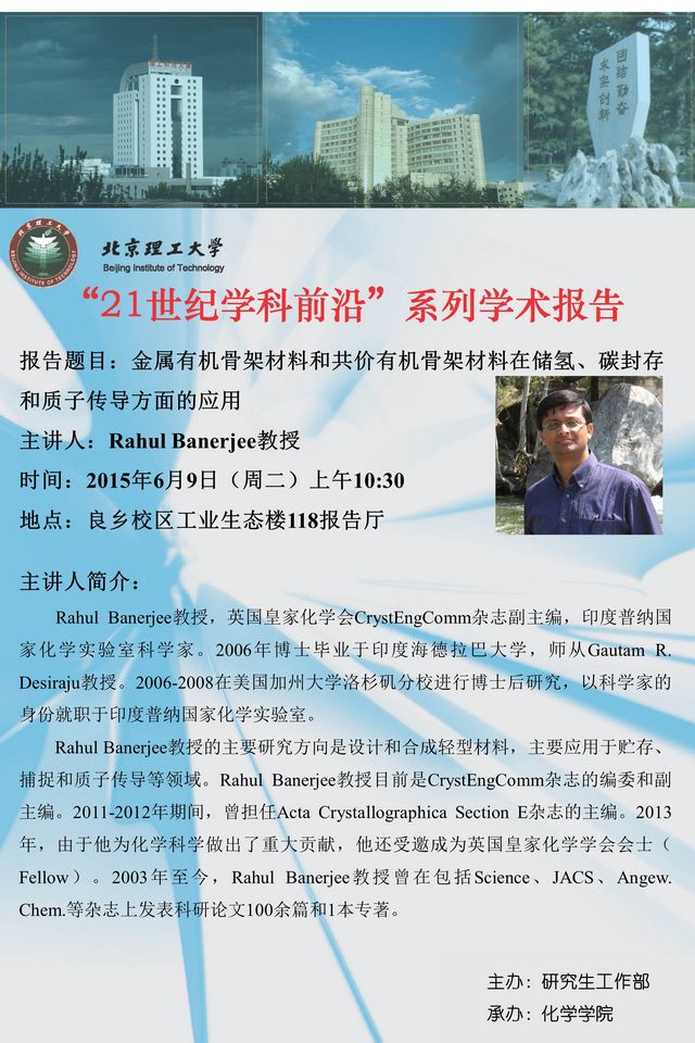 化学学院"21世纪学科前沿"系列学术报告预告