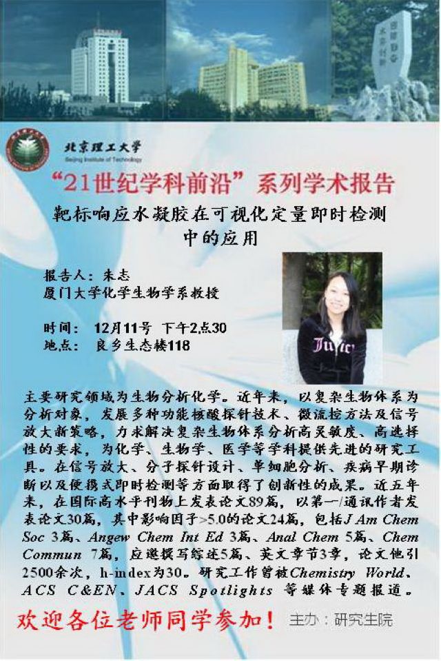 【化学学院】“21世纪学科前沿”朱志教授学术报告通知