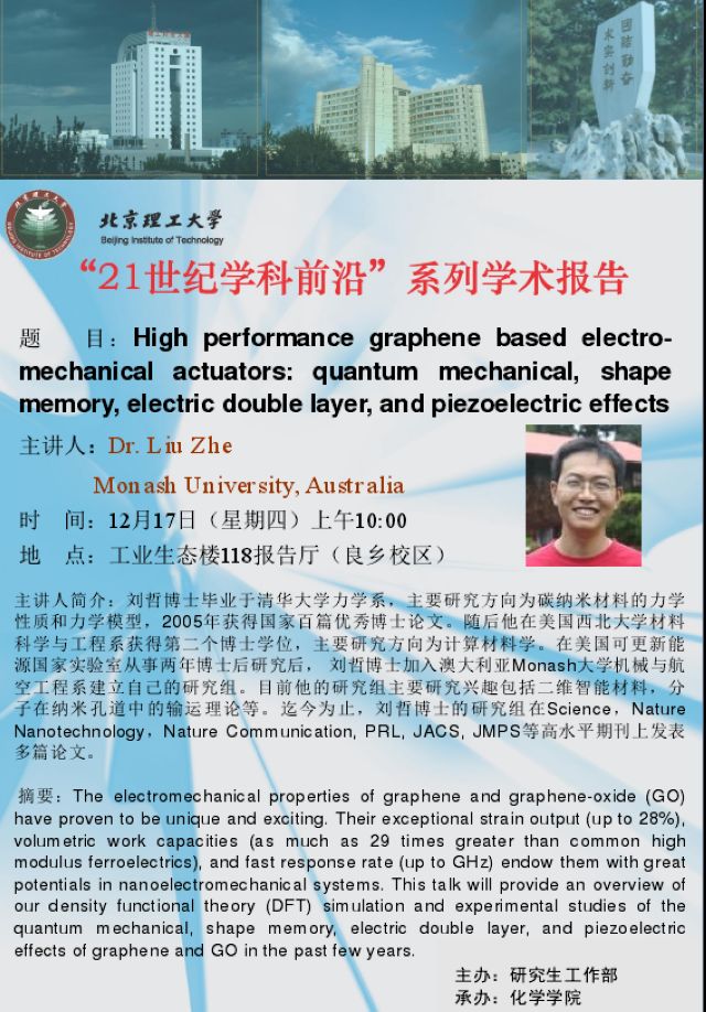 【化学学院】“21世纪学科前沿”刘哲博士学术报告通知