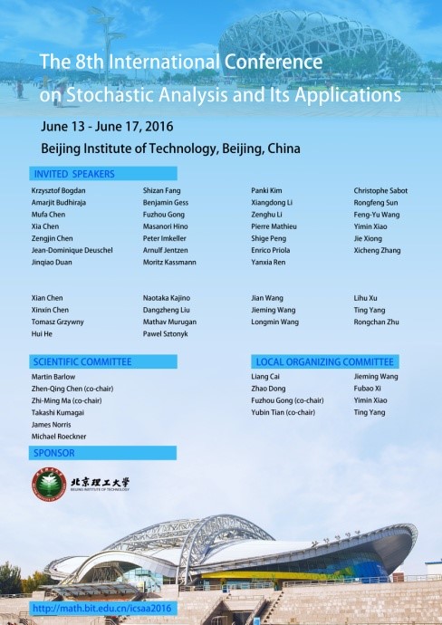 自2006年,第一届随机分析及其应用国际会议在美国西雅图华盛顿大学召开以来,这一系 列会议已经分别在首尔国立大学(首尔,2008),德赢AC米兰官网(北京,2009),关西大学(大阪 ,2010),波恩大学豪斯多夫数学中心(波恩,2011),Będlewo 巴拿赫中心(波兰,2012)和首 尔国立大学(首尔,2014)举行了第二到七届。本次会议的官方网址: