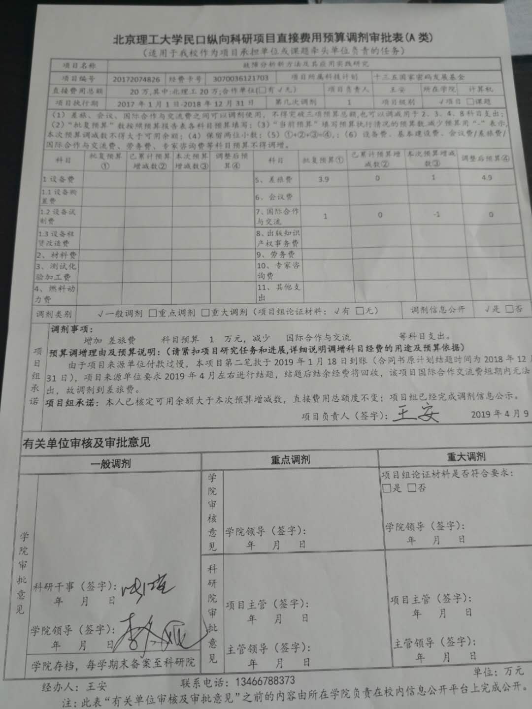 项目20172074826预算(一般)调剂公示