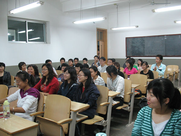 为了解学生目前在山东大学的学习和生活情况,2008年10月16日,教务处韩宝玲副处长,人文学院张红峻院长、宋桂芝教学副院长带领教务处及人文学院法学、经济学教研室负责教师一行,赴山东大学看望我校访学学生。10月16日晚在山东大学东校区公教楼105教室,参加访学项目的学生与老师召开了见面会。