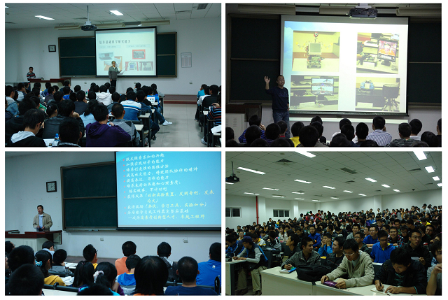 10月14日,邀请张忠廉、洪瑾、孙华飞、史庆藩、张婷、苏伟、吕桂琴、刘颖、马志峰等9名科技创新指导经验丰富的教师在良乡校区进行专题讲座。通过讲座,引导学生参与科技创新活动,激发学生参加创新活动的兴趣,让学生知道 "做什么"、"如何做"、"做到什么程度"。
