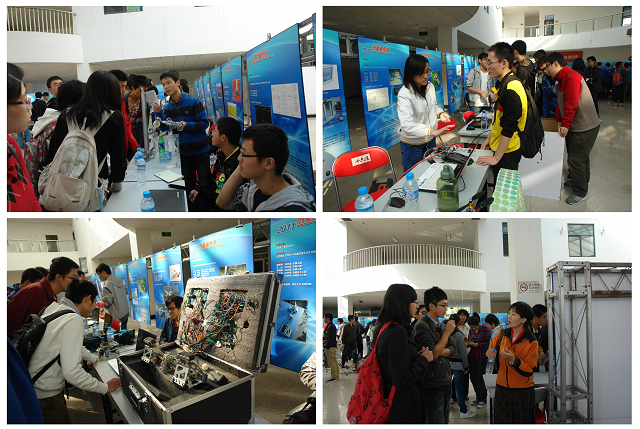 10月15日,在良乡校区学生服务中心,举行了2011年优秀大学生科技创新作品展。参展作品主要是各级各类学科知识竞赛、国家级与校级大学生创新项目优秀作品,包括全国大学生电子设计竞赛、信息安全竞赛、数学建模竞赛、机械设计大赛、"挑战杯"、智能车大赛、节能车大赛、机器人大赛、工程训练综合能力大赛、计算机博弈锦标赛等赛事获奖作品及第四届大学生创新论坛入选作品。在现场,高年级的同学将自己制作的作品进行实物展示,并为前来参观的同学热情讲解,讲述他们创作的灵感和思路,创作过程中的艰辛和喜悦。展示会中的优秀作品及团队成员,为低年级学生树立了榜样和目标,让其知道"他们能做"、"不仅能做、还能做得很好"。