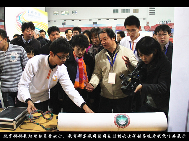 代表我校参加大会的大学生课外科技创新作品——“狭窄空间维修设备搭载平台”(指导教师:罗庆生、韩宝玲;项目组成员:王小龙、冯达、莫洋、白亚群、任峻峰、马慧茹、赵晓瑞)作品不辱使命,取得了我校参加年会历史上的新突破:荣获了由学生代表投票评选的“我最喜爱的项目”称号,且排名第一,同时该项目还获得了由专家组考察评选的“十个优秀创新项目”称号。该作品本次年会上勇夺双冠,算起来是罗庆生教授和韩宝玲教授指导作品参加“大创年会”的五连冠。