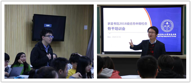 辅导员王硕在培训会上这样鼓舞2018级的各位班长支书们。11月10日晚21点,求是书院召开“求是书院2018级本科生德育中期检查骨干培训会”,求是书院副院长周芳集、专职辅导员王硕、2018级全体班长支书参与了骨干培训会。