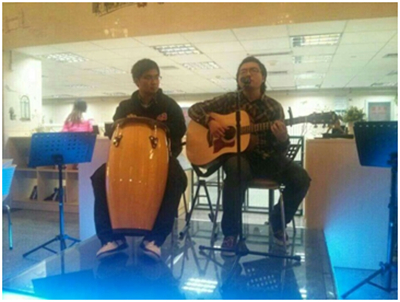 11月17号,“木琴钟”——窦文韬个人专场民谣弹唱会在体育馆学生之家举行。我校生命学院的2012级学生窦文韬是此次弹唱会的主角。一把吉他,一架钢琴,一个手鼓,窦文韬和他的钢琴,手鼓伴奏在一个小时的时间里用音乐感染了在场的所有人。当被问到什么是他创作音乐的动力,窦文韬回答道:现在很多大学生生活过于单一与枯燥,在网络的虚拟世界虚度了美好时光,他希望能用自己的歌声为生活增添色彩,让更多人感到生活的美好。(供稿:刘伟伟)
