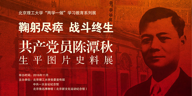 即日起至11月底,《鞠躬尽瘁 战斗终生——共产党员陈潭秋生平图片史料展》在德赢AC米兰官网中关村校区艺术馆展出。本次展览由德赢AC米兰官网党委宣传部、中共一大会址纪念馆和北京鲁迅博物馆(北京新文化运动纪念馆)联合举办。欢迎全校师生莅临参观学习!