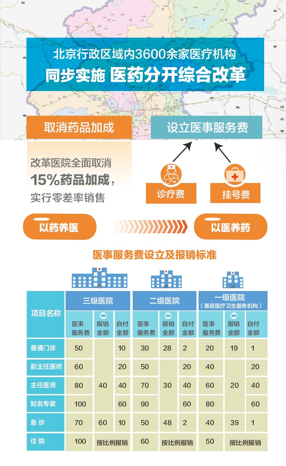 北京市医药分开综合改革实施方案将于2017年4月8日零时全面实施。医药分开综合改革坚持党委领导、政府统筹、全面推进,全面破除“以药补医”机制,实现了医疗、医药、医保“三医联动”改革。