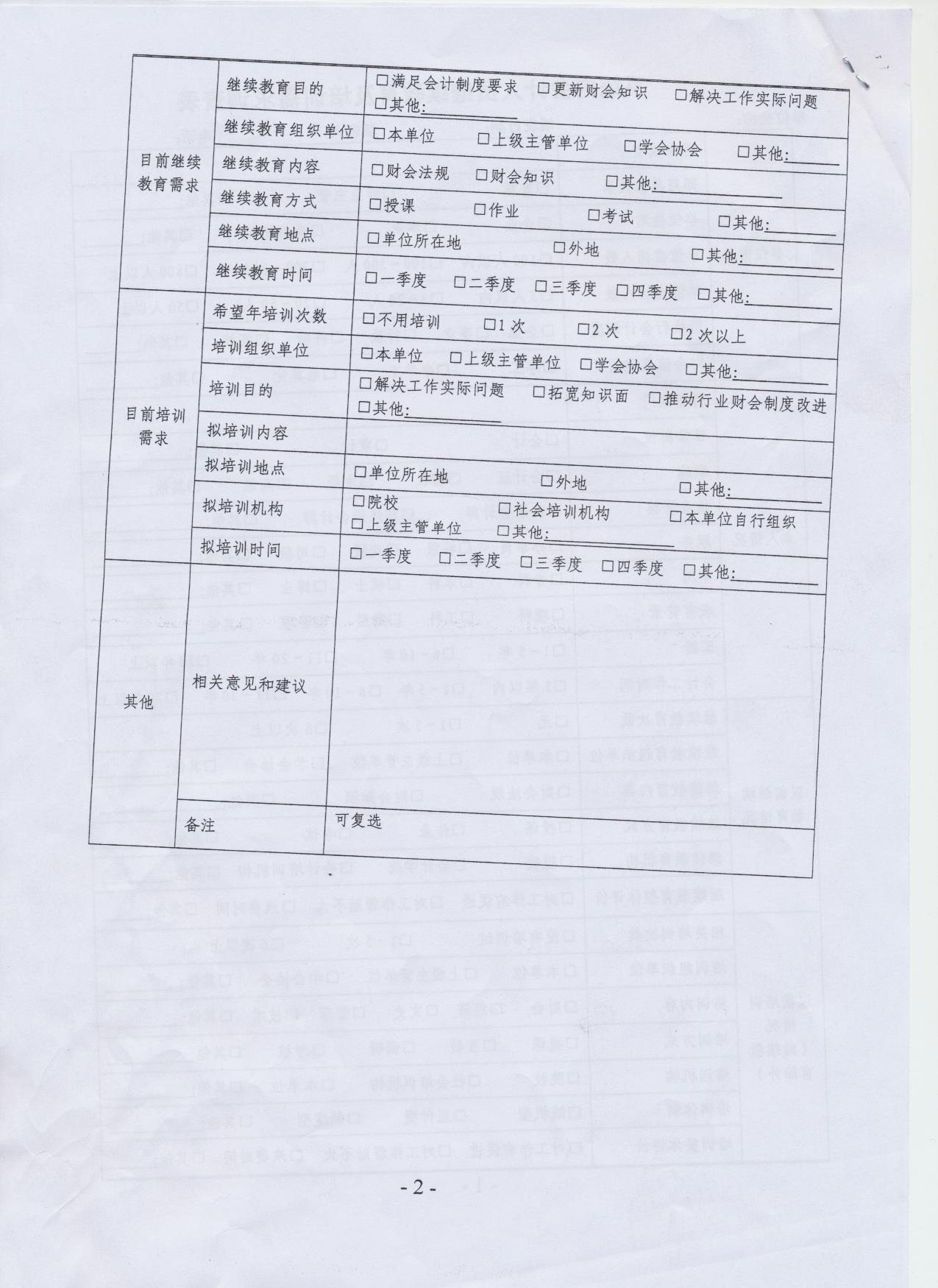 校属各单位: 为了了解系统内各单位会计人员对培训及继续教育的需求,同时征求对今后相关工作的意见与建议,工信部财务司编制了《系统内会计人员培训及继续教育需求调查表》(见附件),请我校各单位组织会计人员认真填写,并于2009年3月13日前交至财务处综合科。