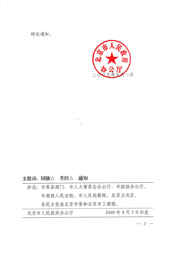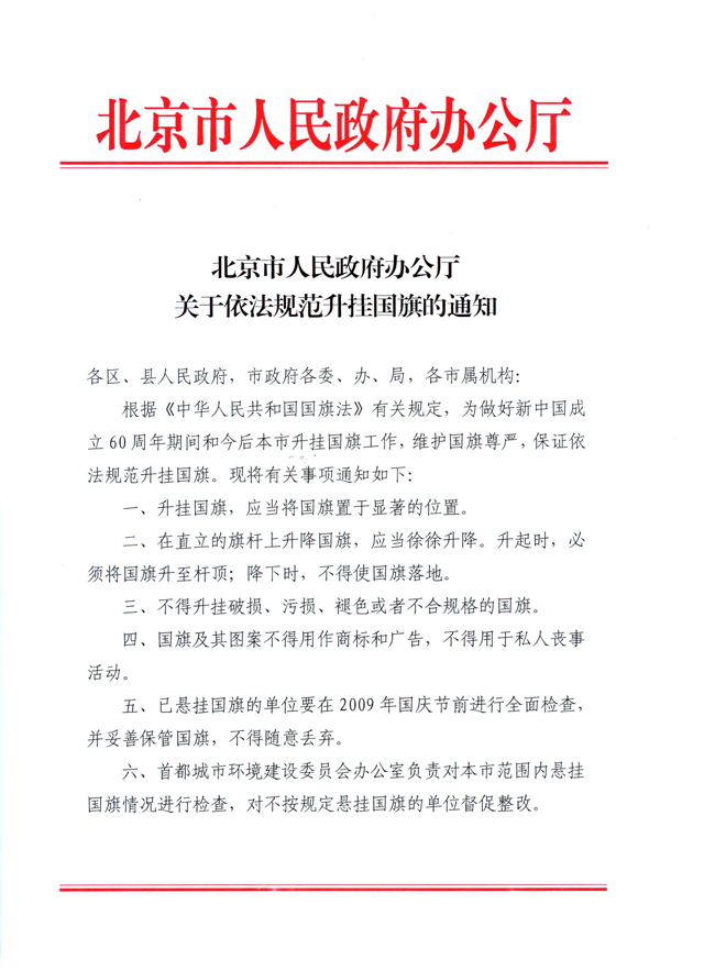 > 转发北京市人民政府办公厅关于依法规范升挂国旗的通知