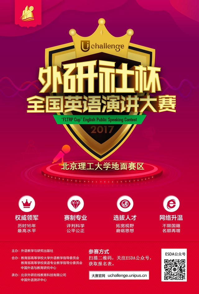 【外研社杯】2017全国英语演讲比赛报名通知